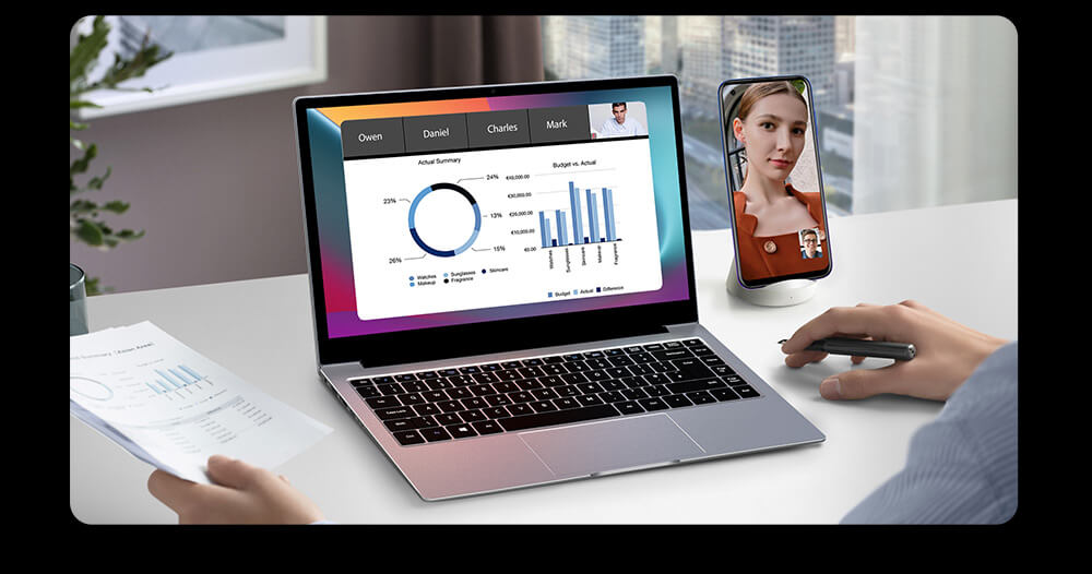 В ноутбуке AceBook1 установлен отличный 14" FHD экран, который обеспечивает абсолютно точную картинку при просмотре фото и видео. Экран занимает 84% площади, что на 23% больше, чем в среднем у ноутбуков.